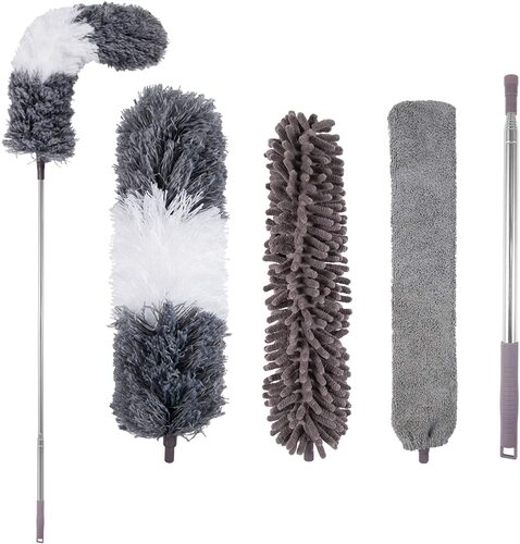 • 【Bendable&Washable Duster Head】With a 360 degree bendable Microfiber cleaning cloth head and a protective soft rubber cover. Detachable microfiber cleaning head makes it easy for maintenance, Remove the head after use and wash the cleaning head with warm water and hang it at dry and ventilated place to make it fluffy for next use.
