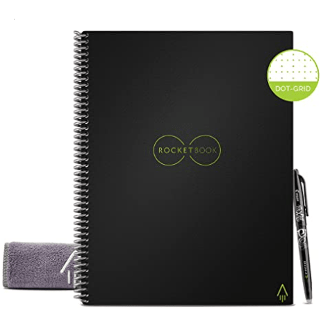 - Includes 1 Rocketbook Core (formerly known as Everlast) Letter Size (8.5″ x 11″) Notebook, 1 Pilot Frixion Pen, and 1 Microfiber Cloth. Note package may reflect “Everlast”